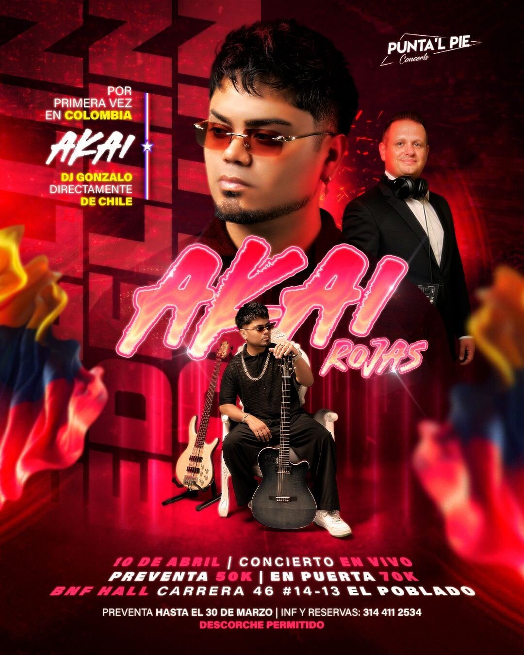 Concierto en vivo de Akai Rojas por primera vez en Colombia, con artistas invitados y DJ internacional.